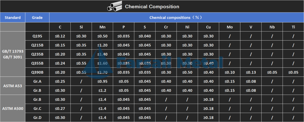 Steel Pipe for Ordinary Structure | GB/T 13793 | Q195、Q215、Q235、Q355B | Longitudinally electric resistance welded steel pipe |