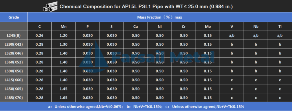 GB/T 9711: L245(B),L290(X42),L320(X46),L360(X52),L390(X56),L415(X60);