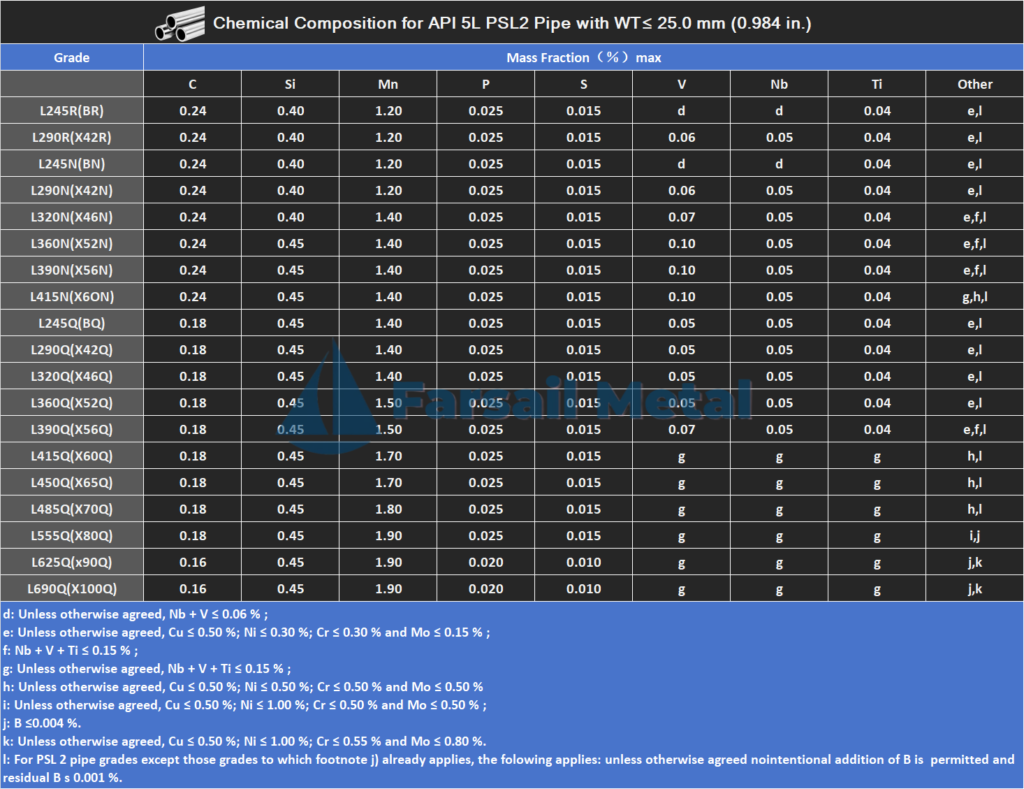 API 5L: L245(B),L290(X42),L320(X46),L360(X52),L390(X56),L415(X60);