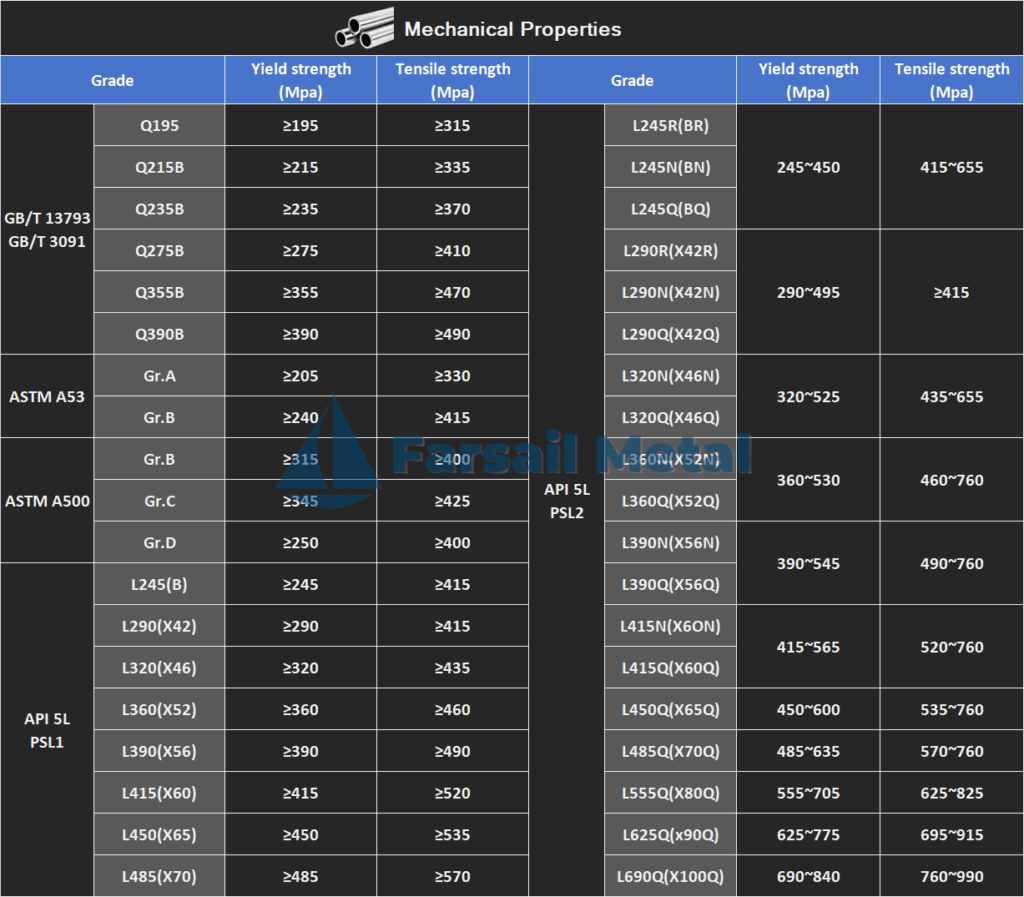 Common standards for Welde carbon steel pipes | Common Grades | Main Application | |